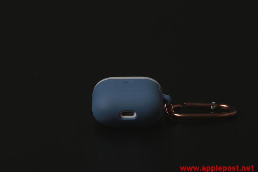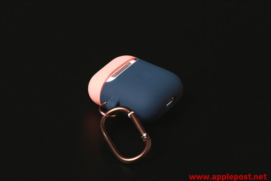 캬라비너 고리를 연결한 모습입니다. 캬라비너고리를 통해 가방에 걸어 휴대할 수도 있고 키링등의 악세사리를 추가로 사용할 수도 있습니다. 라이언이나 아이언맨과 같은 캐릭터들이 붙어있는 에어팟케이스들도 많이 판매가 되고 있는데 저는 이런 깔끔한 디자인의 케이스가 더 좋더군요. 왜냐하면 에어팟을 가방이 아닌 바지주머니에 넣고 사용하기 때문에 캐릭터가 붙어서 두껍고 커지면 바지가 더 튀어나오기 때문이죠.