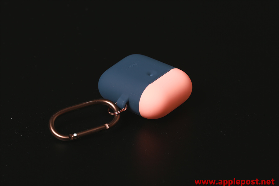 캬라비너 고리를 연결한 모습입니다. 캬라비너고리를 통해 가방에 걸어 휴대할 수도 있고 키링등의 악세사리를 추가로 사용할 수도 있습니다. 라이언이나 아이언맨과 같은 캐릭터들이 붙어있는 에어팟케이스들도 많이 판매가 되고 있는데 저는 이런 깔끔한 디자인의 케이스가 더 좋더군요. 왜냐하면 에어팟을 가방이 아닌 바지주머니에 넣고 사용하기 때문에 캐릭터가 붙어서 두껍고 커지면 바지가 더 튀어나오기 때문이죠.