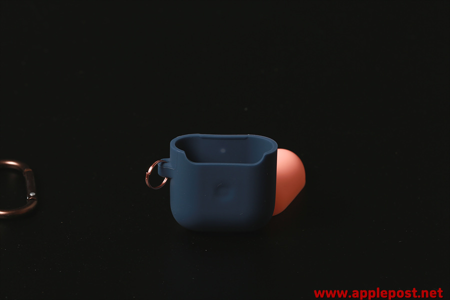 뒷면 힌지부분이 이렇게 분리가된 디자인이기 때문에 자꾸 저절로 닫히거나 하지 않고 완벽하게 에어팟 그대로의 뚜껑열림을 유지할 수 있습니다. 에어팟1과 에어팟2가 달라진점중에 하나가 바로 또 이 무광 힌지 부분입니다. 에어팟1은 유광이었지만 에어팟2에서는 이렇게 무광힌지로 바뀌었죠.