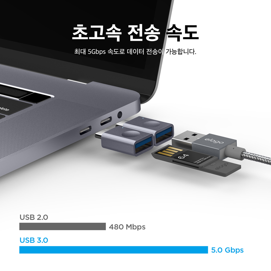 usb3.0 지원으로 초고속 전송속도인 최대 5Gbps 속도로 데이터 전송이 가능합니다.