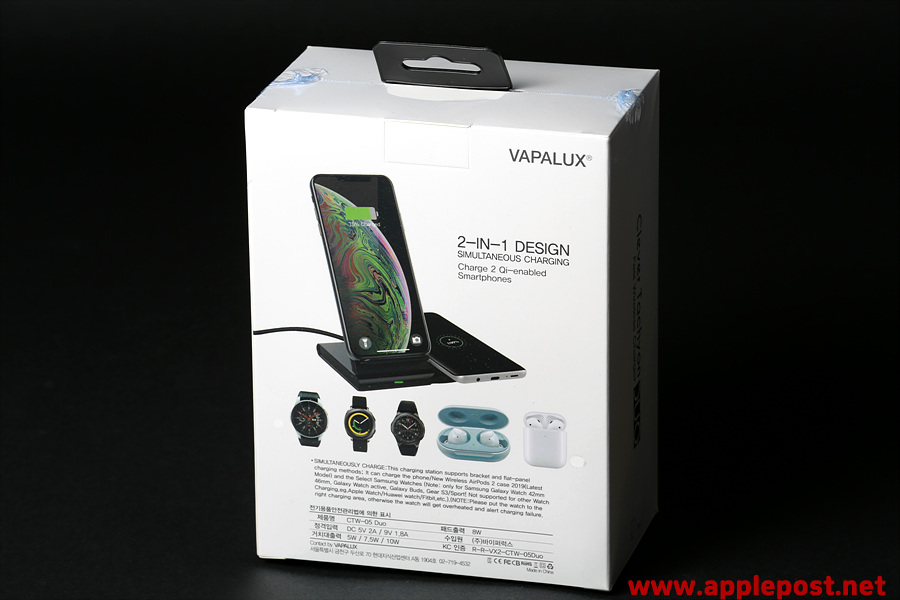 전면사진에서 알수 있듯이 스마트폰과 갤럭시 워치류를 동시에 충전하고 있습니다. 애플워치는 독자방식이라 충전이 불가하지만 갤럭시 스마트워치는 이렇게 충전이 가능합니다.