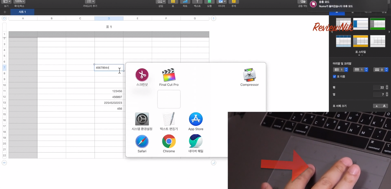 숫자키패드를 사용중에 마우스를 움직일 필요가 있을때는 꼭 다시 우상단에서 스와이프하여 전환할 필요없이