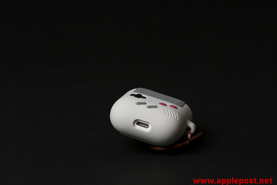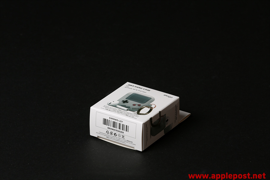 뒷면에는 elago 로고와 함께 배터리 케이스 같은 디자인까지 레트로 게임기의 디테일이 살아 있는 에어팟 케이스입니다.