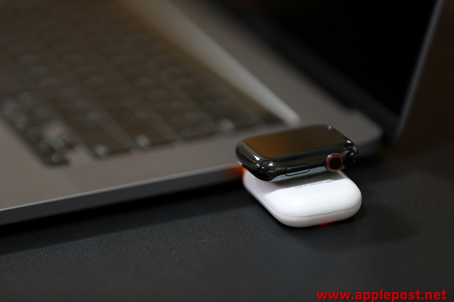 이번에는 애플워치를 뒷면으로 돌려서 충전하는 모습입니다.