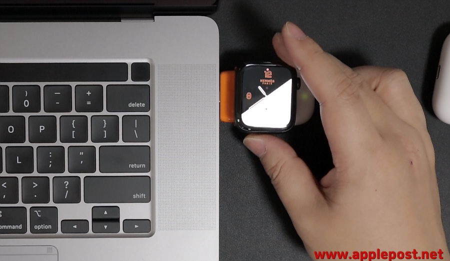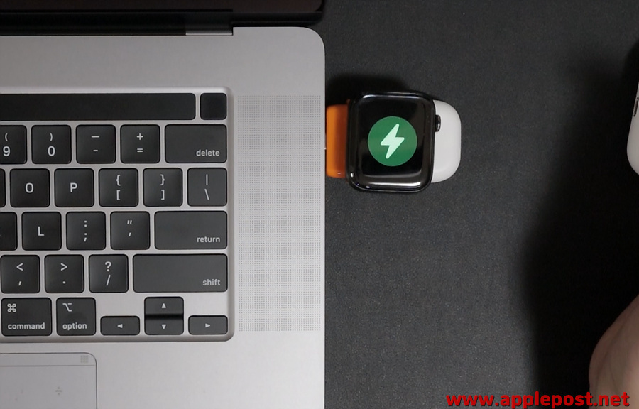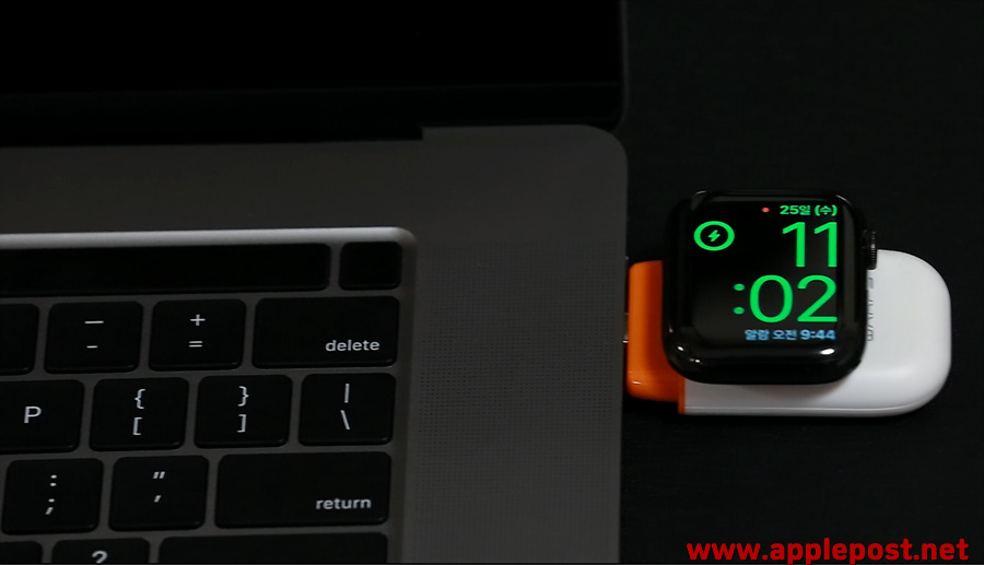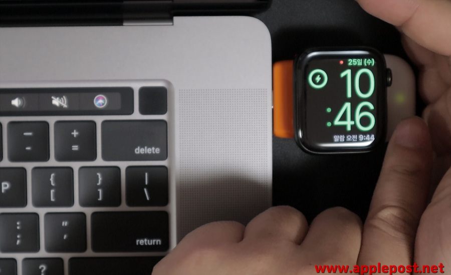 이번에는 애플워치를 뒷면으로 돌려서 충전하는 모습입니다.
