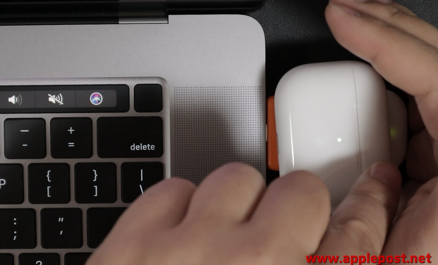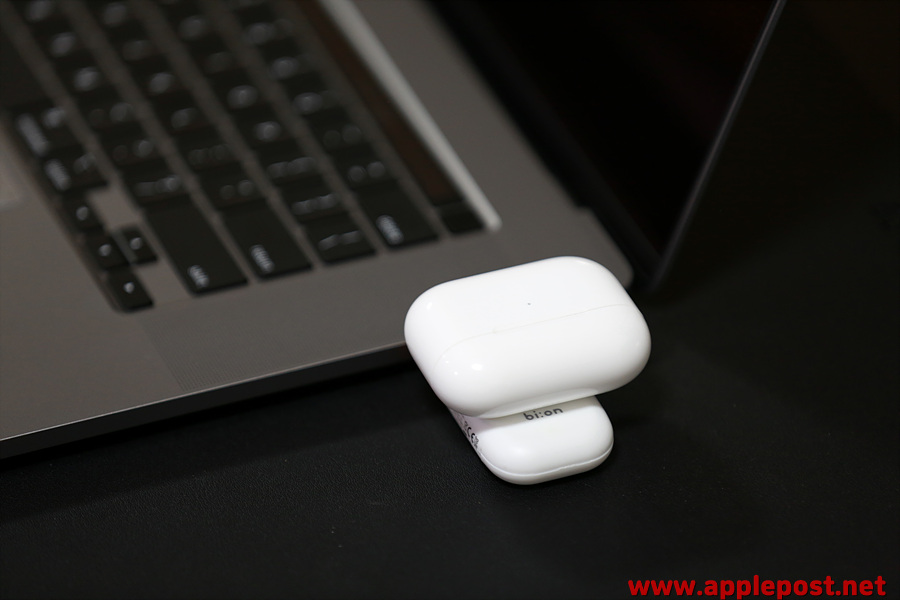 이번에는 다시 전면으로 돌려서 애플 에어팟프로를 충전하는 모습입니다.