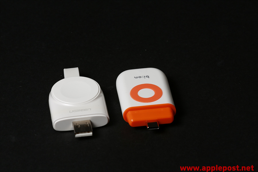 기존에 애플워치 전용으로 사용하던 휴대용 ugreen 제품과 비교를 해보았습니다. 더 작고 얇고 최신제품답게 usb-c포트를 채택하고 있는 모습이 다른점입니다. 그리고 애플워치 이외에 제품도 충전가능하다는 점은 차원이 다른 장점이구요