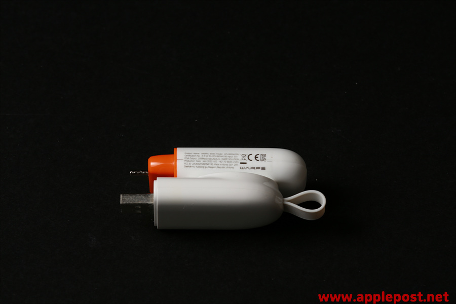 뚜껑은 탈 부착이 가능하도록 되어있고 헐겁지 않게 되어 있습니다. 캡을 열어보면 usb-c 타입 연결단자가 나옵니다. 맥북프로나 c타입 보조배터리 등에 바로 끼워서 사용이 가능합니다.