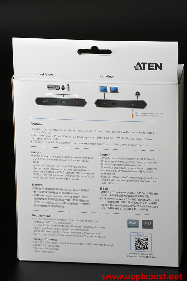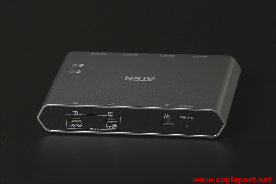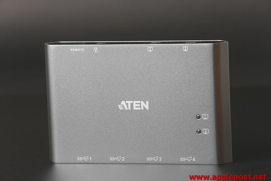 aten us3342제품 본체는 회색과 검정색의 투톤으로 되어 있고 맥북의 스페이스 그레이 색상의 제품과 매우 잘 어울릴거 같은 디자인을 하고 있습니다.