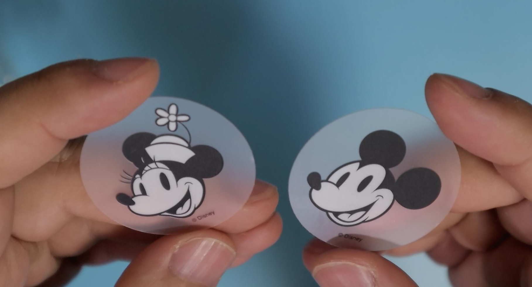 동그란 원형의 미키와 미니 두장의 스티커가 들어있어서 사용할 수가 있습니다.