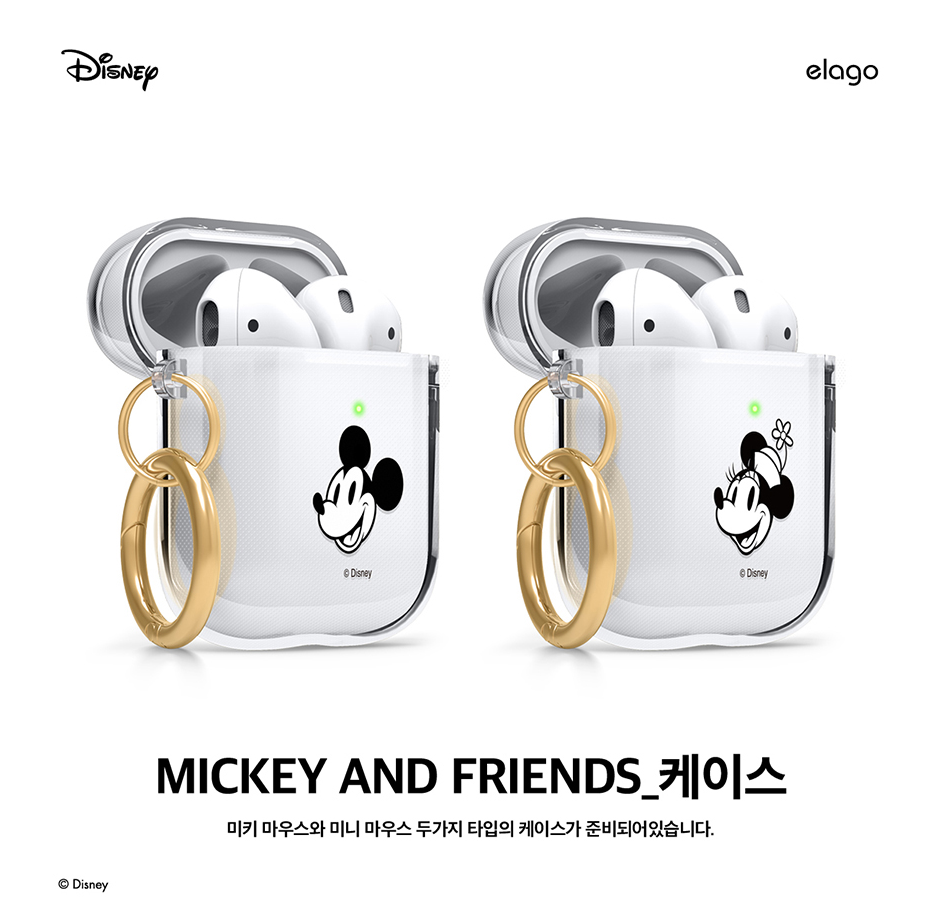 엘라고 디즈니 에디션은 아이폰 케이스 뿐만아니라 에어팟1,2용 케이스와 에어팟 프로용 케이스까지도 출시가 되었습니다. 에어팟프로용 케이스는 좀더 다양하게 출시가 되었는데 에어팟용 케이스는 클리어 행케이스는 미키 마우스와,미니 마우스 두가지 타입의 버전으로만 출시가 된 상태입니다.