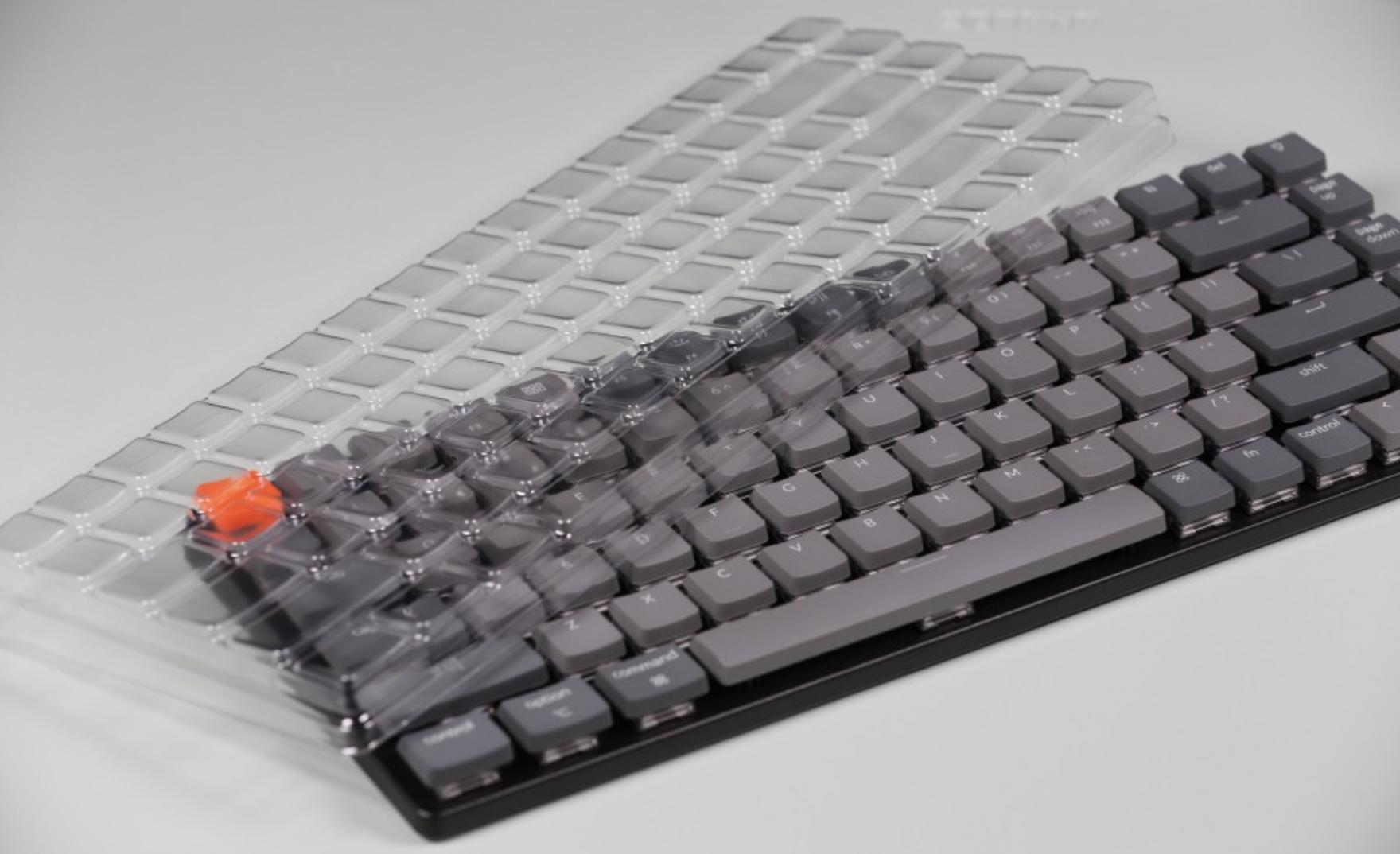 키크론k3에는 투명한 플라스틱으로 된 키보드 커버가 포함되어 있습니다.
