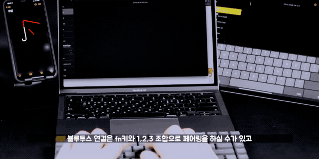 가장 중요한 페어링 버튼은 Fn+1, Fn+2, Fn+3 으로 3대를 각각 페어링 하고 전환할때 사용하시면 됩니다.