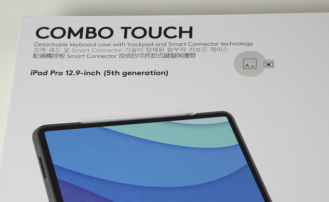 옆면에도 Logitech COMBO TOUCH iPadPro 12.9-inch (5th generation) 으로 제품을 확인할 수 있게 표시되어 있습니다.