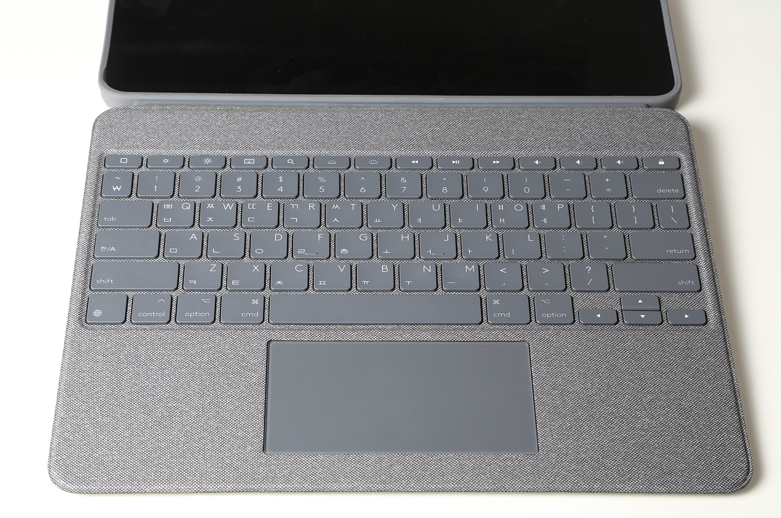 로지텍 콤보터치는 한국정식 출시된 제품으로 한글키가 각인되어 있습니다.