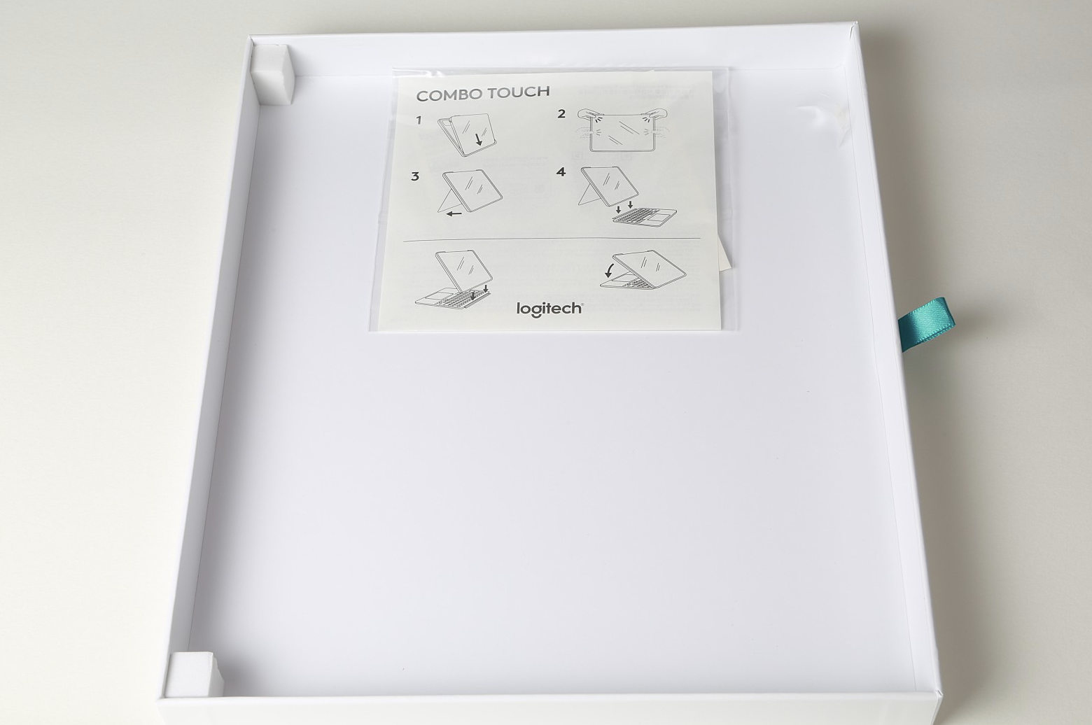 오른쪽에 있는 녹색의 리본을 잡아당기면 이렇게 로지텍 콤보터치가 모습을 드러냅니다.